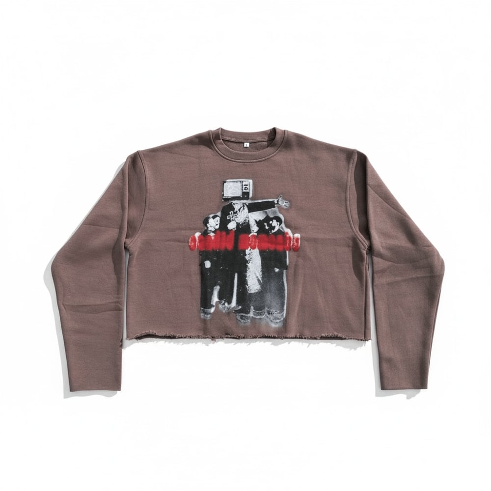- Oversized/Baggy Fit - Jumbo Print On Front - Distressed & Detailed In House - Raw Sleeve Hem - Cropped off Bottom Hem - Salt Washed For Aged Feel